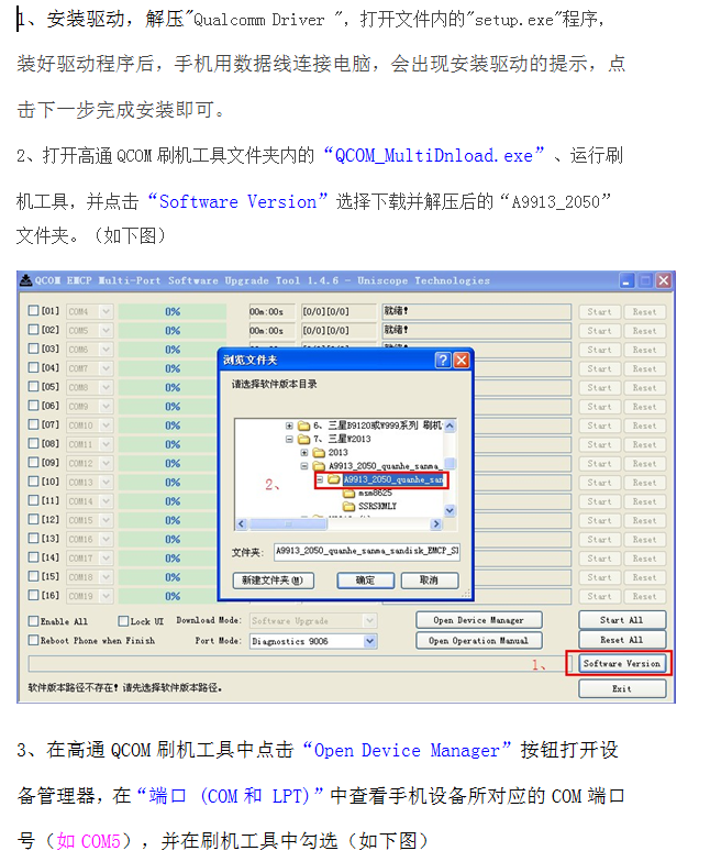 高通qcom刷機工具可用于高通機型的手機刷機操作,并附上了驅動程序和教程,不會的可以參考一下教程,過程非常的詳細,看不懂的地方可以在下方留言,趕緊下載吧。