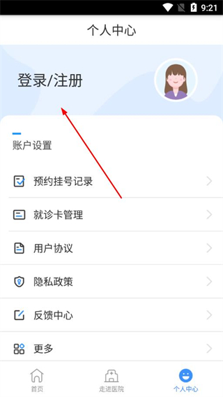 2、在個(gè)人中心頁(yè)面中,點(diǎn)擊登錄/注冊(cè)區(qū)域,進(jìn)入登錄相關(guān)頁(yè)面。