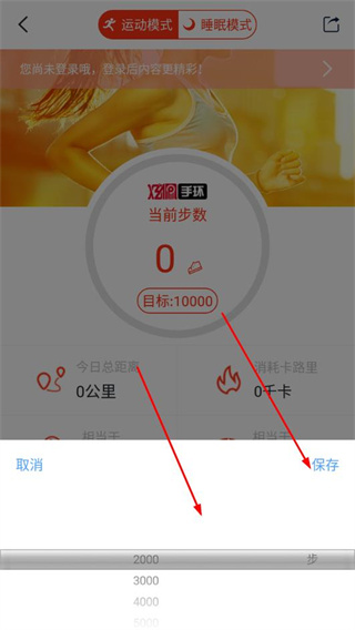 3、在彈出的設(shè)置界面調(diào)整目標(biāo)步數(shù),完成后點(diǎn)擊保存。