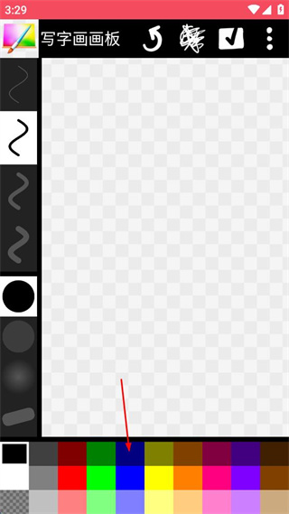 3、在界面底部的顏色欄中選擇藍(lán)色,確定本次繪畫將使用的色彩。