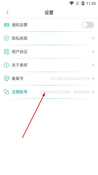 3、在設置頁面,點擊注銷賬號選項,進入注銷賬號確認頁面。
