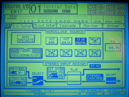 YAMAHA 03D中顯示同軸數字信號已經連接,字時鐘匹配正常