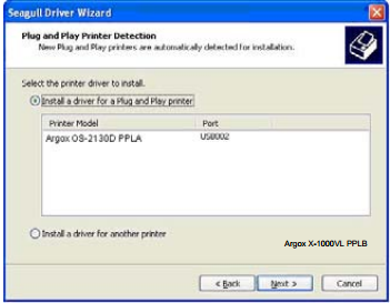 4. 在 Seagull 驅(qū)動(dòng)程序精靈提示下,選擇第一個(gè)單選按鈕「為隨插即用打印機(jī)安裝驅(qū)動(dòng)程序」按「下一步」: