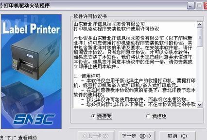 1)運(yùn)行文件夾“LabelPrnSetup_CN V1.33”中的“Setup.exe”,仔細(xì)閱讀相關(guān)軟件許可協(xié)議,如果接受協(xié)議中所有條款,點(diǎn)擊“我接受”,然后點(diǎn)擊“下一步”按鈕。