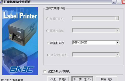 2)選擇安裝的打印機(jī)類型、名稱,如果要設(shè)置該打印機(jī)為系統(tǒng)默認(rèn)打印機(jī),選中“設(shè)置為默認(rèn)打印機(jī)”按鈕,點(diǎn)擊“下一步”按鈕。