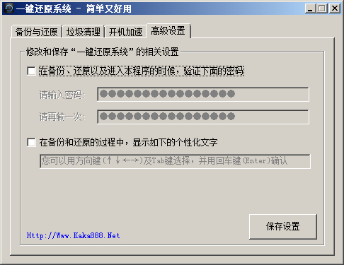 如果您還想把“一鍵還原系統(tǒng)”變得更個(gè)性化,也可以在這里輸入個(gè)性化的文字信息