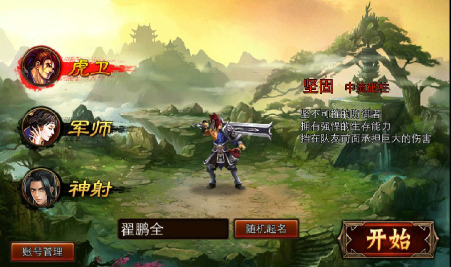 ● 成功登陸游戲后,會(huì)進(jìn)入選擇武將職業(yè)的界面,這時(shí)你可以點(diǎn)擊你喜歡的職業(yè)。