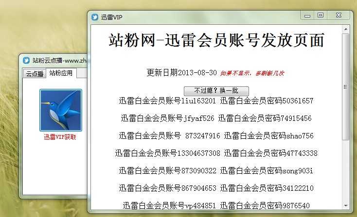 2、站粉云點(diǎn)播還提供了“迅雷VIP獲取”應(yīng)用,迅雷白金賬號(hào)免費(fèi)發(fā)放