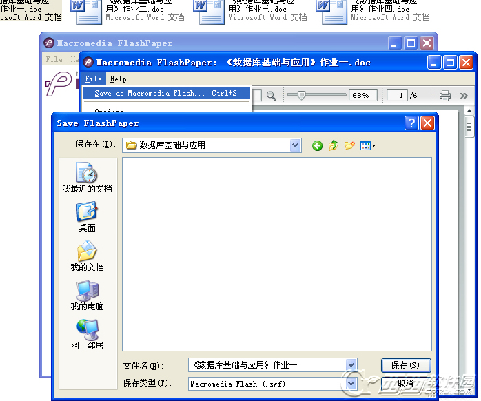 你把Flashpaper打開,把Word拖到Flashpaper的窗口中在保存一下就行了!