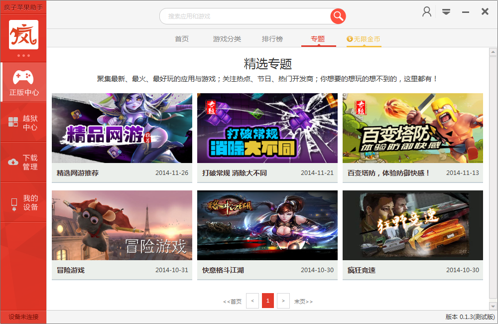 連接到電腦上的瘋子蘋(píng)果助手后我們就可以來(lái)管理手機(jī)上已安裝的應(yīng)用與游戲了,我們也可以在軟件游戲庫(kù)中找到自己想要下載的游戲并下載安裝,最主要的是這款軟件還給大家提供了海量游戲的存檔下載,非常貼心。