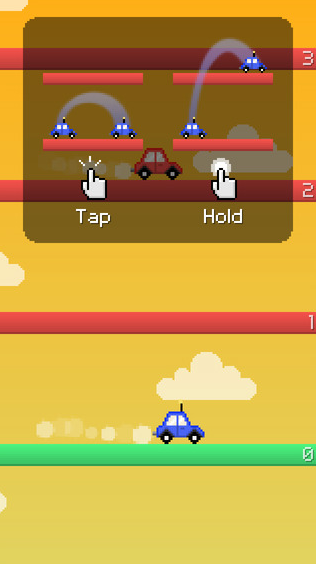 汽車(chē)彈跳(Jump Car)是一款充滿趣味的休閑益智游戲。游戲的玩法很簡(jiǎn)單,就是控制你的小汽車(chē)不斷的向上跳躍。當(dāng)玩家長(zhǎng)按屏幕會(huì)使汽車(chē)躍起跳到上一層,另外玩家控制的汽車(chē)也不是停止的,也會(huì)不停地左右移動(dòng),這無(wú)疑加劇了游戲的難度。如何避開(kāi)來(lái)回穿梭的車(chē)輛快速穿過(guò)道路,讓我感覺(jué)這游戲有點(diǎn)像豎版的天天過(guò)馬路。游戲適合單手操作,但是如果操作不好,就會(huì)成為一款虐心的游戲了。游戲的整個(gè)界面否非常的簡(jiǎn)潔好看,玩法就是要控制你的小汽車(chē)不斷的向上跳躍,觸摸不動(dòng)則為連續(xù)跳躍,用于一層一層的往上爬。跳躍要注意時(shí)機(jī)哦,否則可能會(huì)撞車(chē)喲!歡迎下載體驗(yàn)。