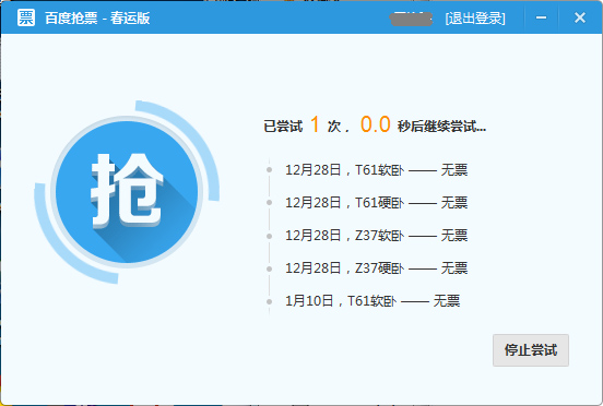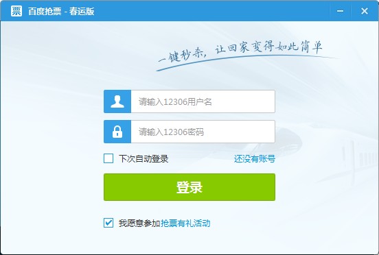 點(diǎn)擊【百度搶票】,輸入自己的12306用戶名密碼,點(diǎn)擊登錄。