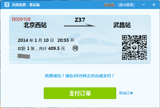 三是付款流程簡潔,系統(tǒng)搶票成功后,會直接引領(lǐng)用戶進(jìn)入12306支付頁面,無需二次登陸,快速完成付款流程。