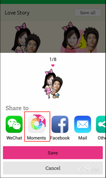 5 分享MojiMe到WeChat、WeChat 朋友圈或是Facebook,讓全世界都看到你自己的動(dòng)態(tài)貼圖 !