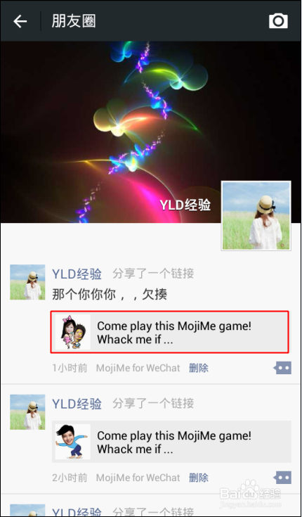 4、進(jìn)入朋友圈后,就可以看到你剛剛分享的 MojiMe 表情鏈接啦!然后直接點(diǎn)擊打開(kāi)鏈接。
