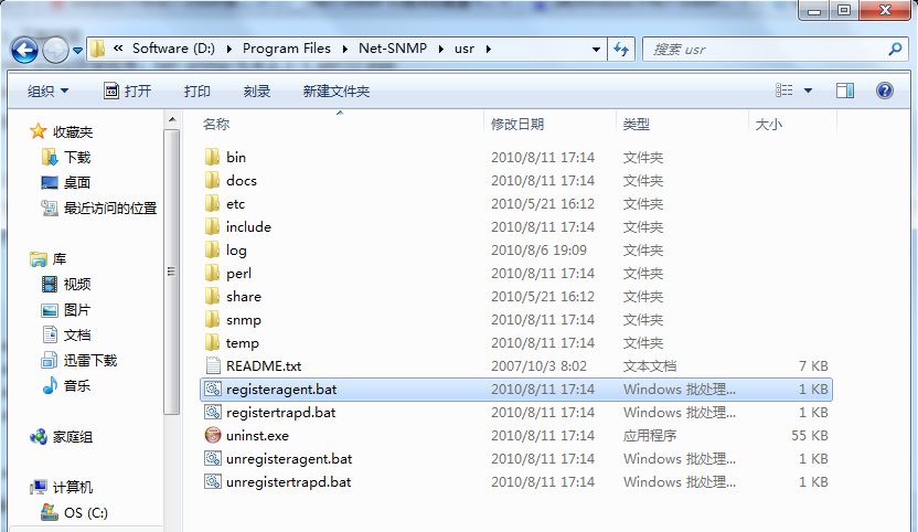 3.注冊snmp agent服務,在(軟件安裝路徑)\路徑下,打開文件registeragent.bat就行,自動注冊服務
