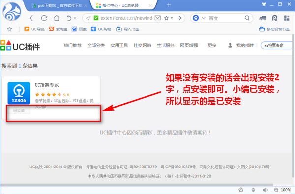 uc瀏覽器搶票專版又稱uc瀏覽器搶票專家是集成uc12306搶票專家,因此是借助搶票插件來快速幫助用戶搶購火車票的。插件添加方法如下: