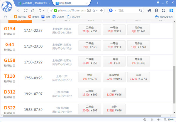 uc瀏覽器搶票專版是uc推出的搶火車票專版瀏覽器。用戶下載uc瀏覽器搶票版后,在瀏覽器內(nèi)置擴展搜索中搜索“搶票專家”即可打開搶票插件。uc瀏覽器搶票專版集成uc12306搶票專家,可通過插件快速幫助用戶搶購火車票。極大地提升網(wǎng)民在12306網(wǎng)站訂票的效率和成功率,在一分鐘內(nèi)可輕松完成查票、訂票和下單的整個操作流程。軟件支持自動刷票,用戶設(shè)置好時間,即可自行購票,無需在苦苦刷新,無需擔(dān)心比別人慢,當(dāng)購票成功后,將在右下角自動提醒,防止用戶錯過付款時間。