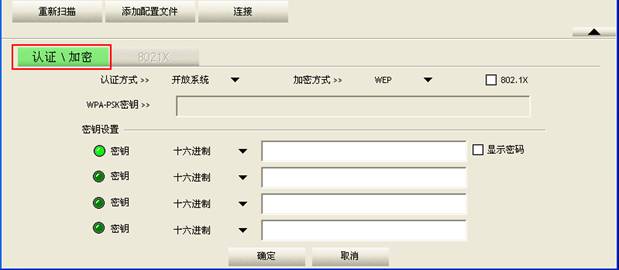 對(duì)于認(rèn)證和加密信息,必須保持和接入點(diǎn)的設(shè)置一致,才能保證能連接上接入點(diǎn)以及正常通信。