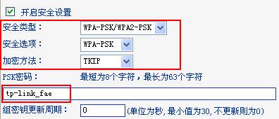 例如:在“TP-LINK_FAE”這個(gè)無(wú)線路由器上,無(wú)線安全的設(shè)置是: