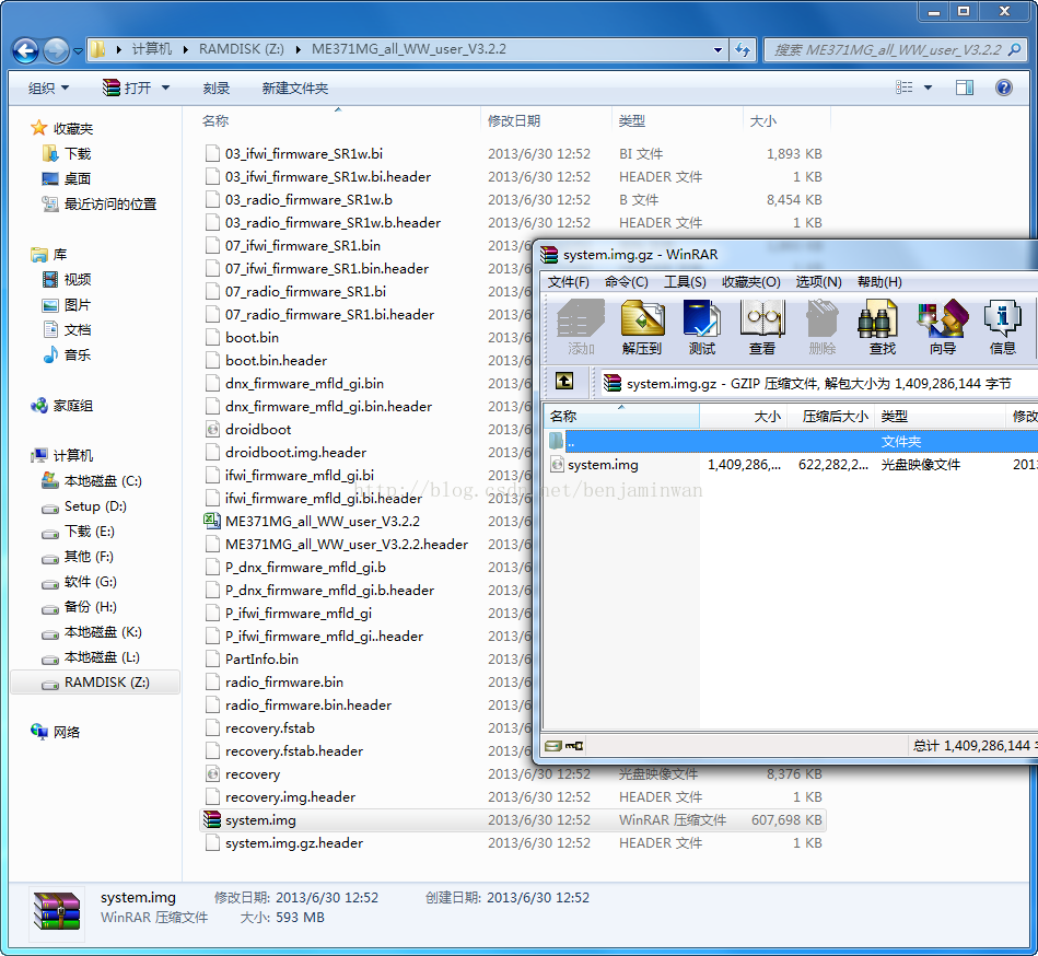 1.下載好的asus官方刷機(jī)包為zip格式,解壓后,生成一個(gè)raw格式的文件。