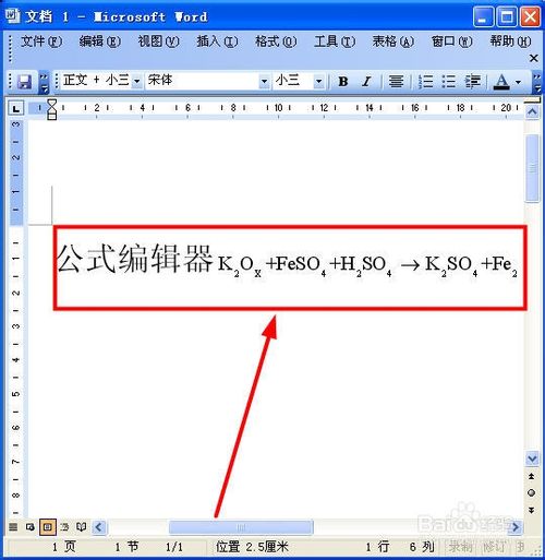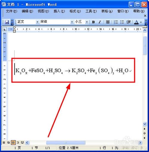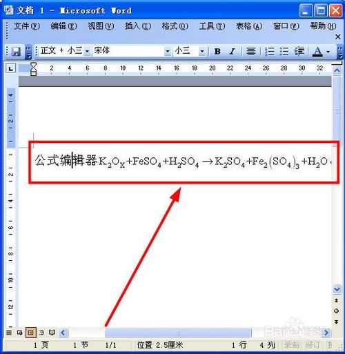 舉例說(shuō)明,現(xiàn)在我們準(zhǔn)備在word里輸化學(xué)方程式,如圖所示