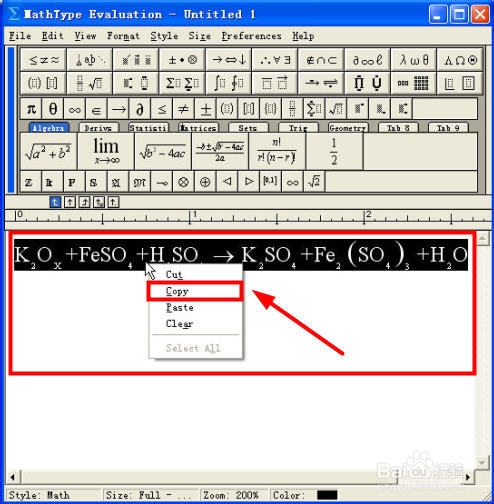 現(xiàn)在要將此公式放在word里面,選擇公式,點(diǎn)擊右鍵,彈出對(duì)話框,選擇“copy”,如圖所示