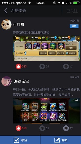 決定別人帖子的命運,與帖子發(fā)布者搭訕,游戲玩家間的交流就是如此輕松簡單。不瘋游,不成精,匯聚最娛樂精神的游戲發(fā)燒友的社區(qū)APP《瘋游精》上線在即,關(guān)注官方資訊與我一起期待吧。
