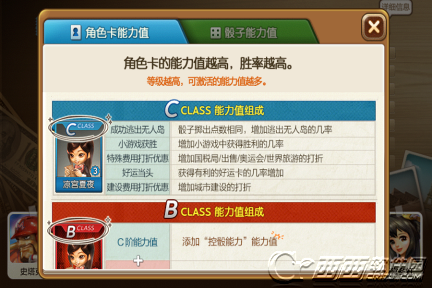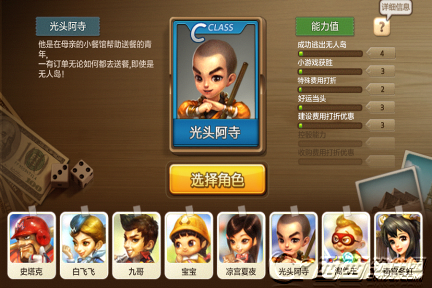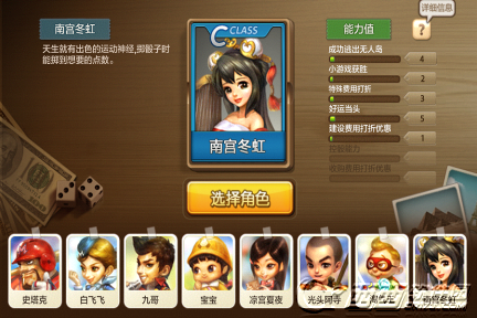 總共有8個角色卡可以選擇,對應的能力值有所不同,點擊右上角的問號可以查看詳細信息說明,并可查看骰子能力值。