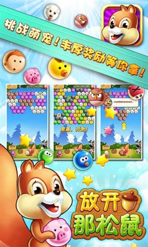 放開那松鼠是上海淼森網(wǎng)絡(luò)科技有限公司開發(fā)的一款休閑類游戲。海外泡泡龍大作,80國(guó)火熱推送中!最萌最好玩的泡泡龍游戲出現(xiàn)啦!可愛的松鼠投擲那些萌萌的寵物球,來破開層層機(jī)關(guān)布局,解救自己的松鼠寶寶?!斗砰_那松鼠》融合了經(jīng)典的泡泡龍消除方式,又加入了10種特殊障礙球,使游戲關(guān)卡更加豐富,有趣??粗粋€(gè)個(gè)可愛活潑的小松鼠關(guān)在球中,還能無動(dòng)于衷嗎!趕快讓我們一起來把它們解救出來吧!