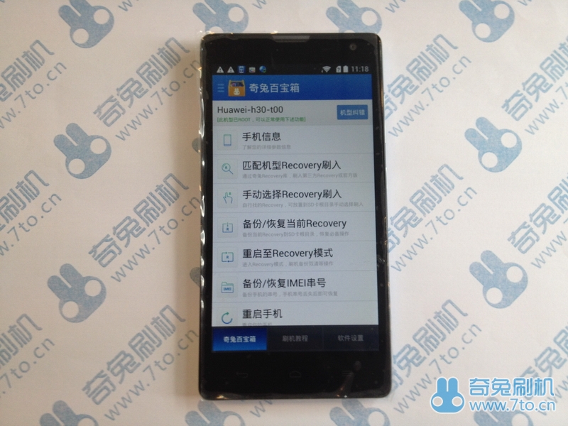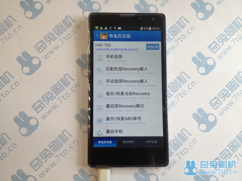 1.3 如果您的手機沒有ROOT,界面將顯示這樣,請將手機ROOT,即可正常操作下列菜單。ROOT方法:http://bbs.7to.cn/thread-8829-1-1.html