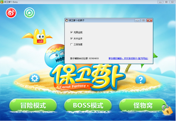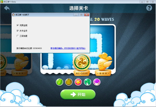 蘿卜保衛(wèi)戰(zhàn)猴子輔助是專用于保衛(wèi)蘿卜PC版的輔助工具,具備無限金錢、關(guān)卡全開、三倍加速三大功能,隨著版本的更新,將會提供更多功能,敬請期待。保衛(wèi)蘿卜官方PC桌面版發(fā)布了,這是真正的保衛(wèi)蘿卜電腦版,并不需要通過安卓模擬器了,直接下載安裝后就可以在桌面上運行了,與此同時,保衛(wèi)蘿卜電腦版輔助工具也第一時間推出了。