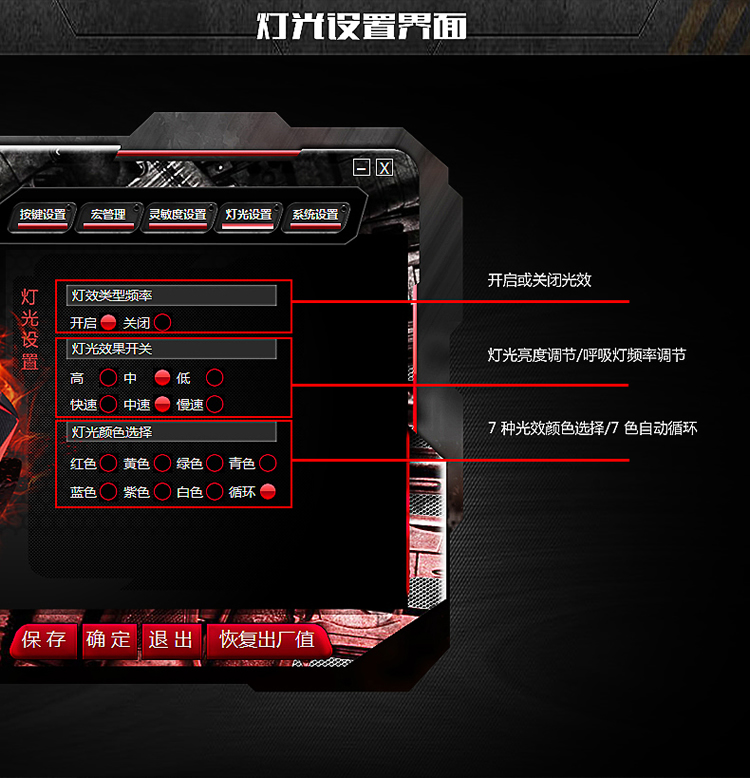 有線游戲、帶彩色燈骨灰級玩家鼠標(biāo),6鍵 3檔變速