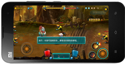 游戲的操作和《天天炫斗》等手機(jī)動(dòng)作游戲基本一致,就連虛擬按鍵的排布位置也都大同小異。也許是現(xiàn)在的手機(jī)用戶都習(xí)慣了這種操作形式,所以在操作上制作商也不需要考慮太多的創(chuàng)新性。說的不好一點(diǎn),有時(shí)候?yàn)E用創(chuàng)新這種東西,也許會(huì)適得其反,現(xiàn)在的國產(chǎn)游戲不都是在互相抄襲中求生存嗎?