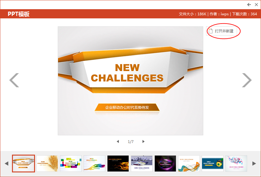 4、點擊【打開并新建】就可以新建一個具有模板的演示文檔