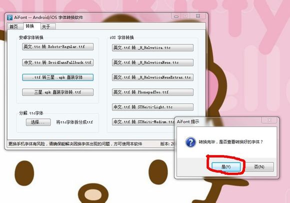 第二步:點擊轉(zhuǎn)換鍵,選擇ttf字體