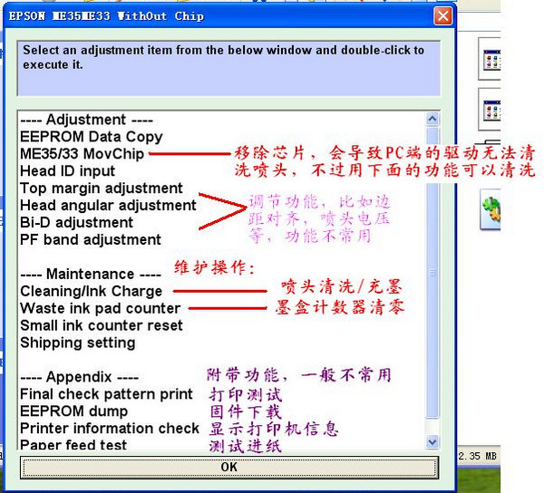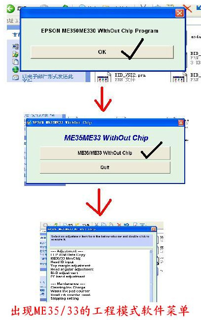 2、彈出一個窗口,點ok,選擇第一個ME35/ME33 without chip