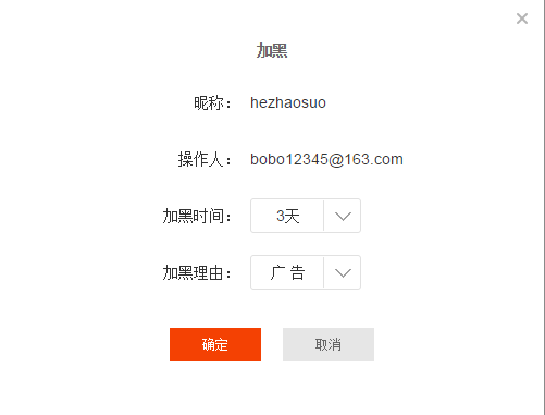 【拉黑】可以在刪除該帖子同時(shí)禁止該用戶在該主播的社區(qū)發(fā)帖??梢赃x擇加黑的時(shí)間和理由。