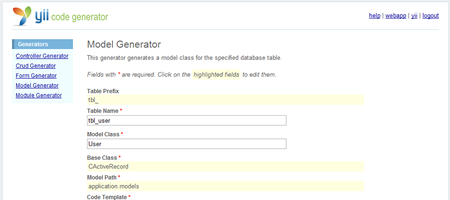 現(xiàn)在到了Yii轉(zhuǎn)變你的數(shù)據(jù)庫模式進入功能性的PHP代碼。使用內(nèi)置的WEB代碼生成器,你也可以把數(shù)據(jù)庫表的定義立刻轉(zhuǎn)變成模型類,不用編寫一行代碼。這個模型類將允許您使用面向?qū)ο蟮娘L格訪問數(shù)據(jù)庫表。