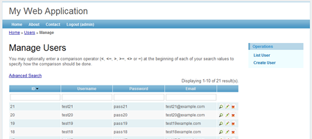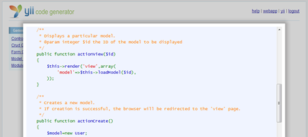 使用上述代碼生成器,您可以進一步產(chǎn)生代碼,對選定的數(shù)據(jù)表實現(xiàn)了典型的CRUD(創(chuàng)建,讀取,更新,刪除)的特征。生成的代碼是高度可用的和可定制的,證實了well-adopted MVC設(shè)計模式(model-view-controller)。 再次,Yii做了所有的創(chuàng)建工作而不需要你寫一行代碼。