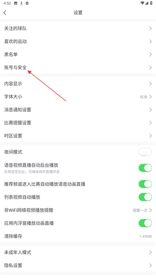 3、在設(shè)置的頁面內(nèi),點擊下方賬號與安全的按鈕。