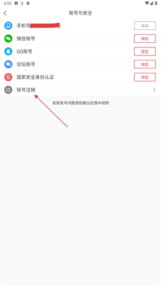 4、在賬號與安全的頁面內(nèi),點擊賬號注銷的按鈕即可。