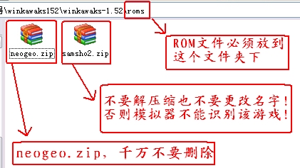 2, 本身roms文件夾里有個(gè)neogeo.zip,千萬(wàn)不要?jiǎng)h除,否則模擬器不能識(shí)別SNK的游戲,例如KOF系列……