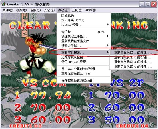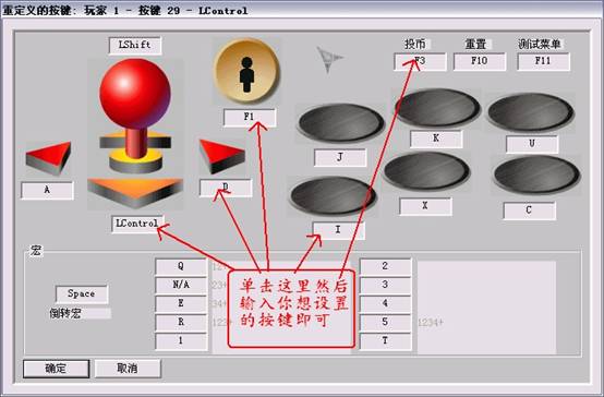 8, 游戲按鍵的更改,必須在已經(jīng)進(jìn)入游戲的狀態(tài)下進(jìn)行修改,點(diǎn)擊菜單的――游戲――重新定義按鍵――重定義玩家1的按鍵――然后單擊想修該的按鍵對(duì)應(yīng)的框,輸入想設(shè)置的按鍵,最后點(diǎn)確定即可。如圖: