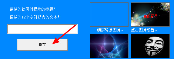 2、選擇鎖屏背景和鎖屏文本,點擊【保存】(鎖屏背景圖片可自行更換,復制圖片到dota目錄即可)