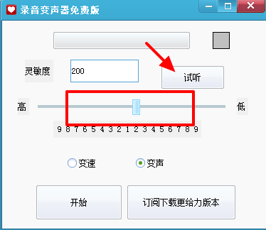 2、錄音完成后,調(diào)整聲音高低,點(diǎn)擊【試聽(tīng)】按鈕,試聽(tīng)效果