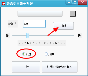 3、勾選變速,調(diào)整速度,繼續(xù)點(diǎn)擊【試聽(tīng)】