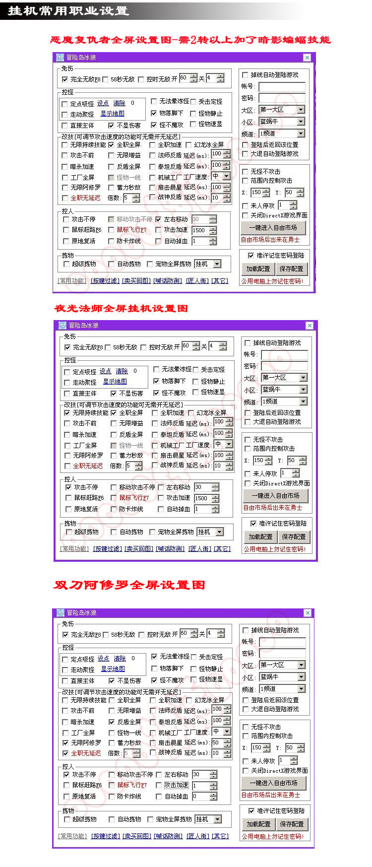 攻擊不停、瞬移打怪、A鍵攻擊、掉線自動登陸、大退自動登陸游戲等其它