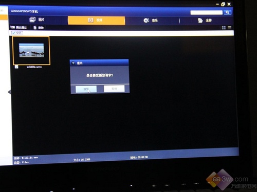通過手機(jī)推送多媒體文件至電腦方式和電視有所不同,推送的過程中電腦會(huì)做出相應(yīng)的提示,如果用戶想要播放推送過來(lái)的多媒體文件,點(diǎn)擊接受按鍵即可完成,不想接受點(diǎn)擊取消按鍵即可。