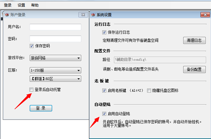 登陸時,勾選自動托管會自動開啟管理,主號建議不勾選,調整默認配置在勾選。